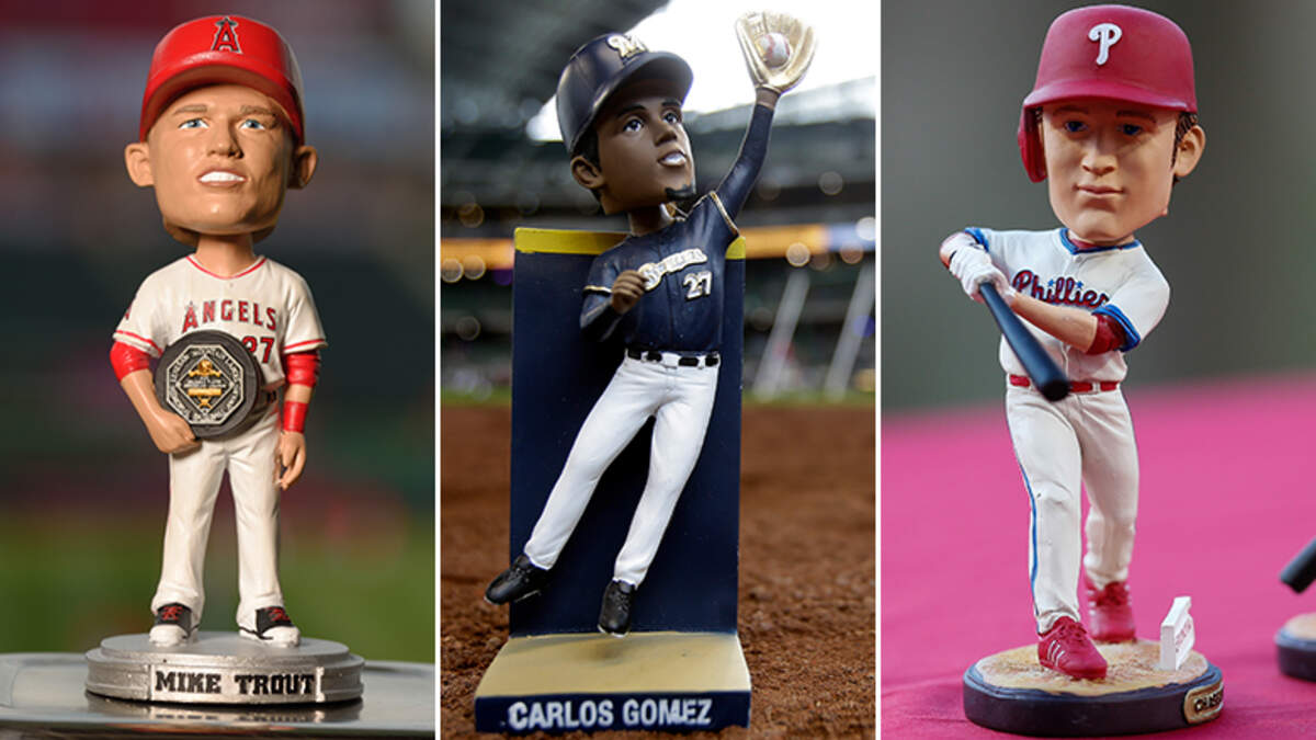 Baseball season is back! If you head to the ballpark early, you might be one of the lucky fans to receive free stuff. Giveaways at stadiums around America have included t-shirts, blankets, caps, BBQ sets, and piggy banks. Let's face it though, there's nothing better than getting a bobblehead of your favorite player. Whether you're looking to add to your collection at home, or you're trying to make a pretty penny off of the figures when you sell them on e-bay, take a look at some of the players who have been transformed into bobbleheads below. Do you see the resemblance?